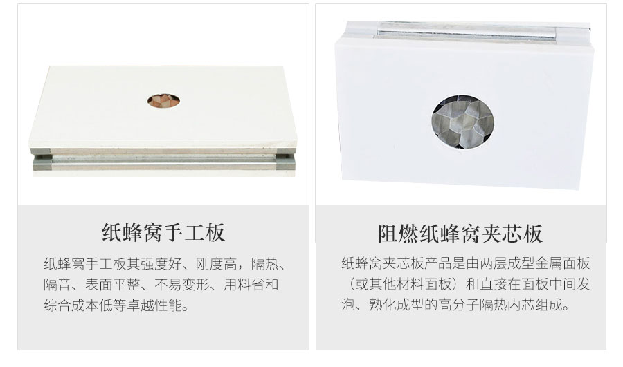 紙蜂窩手工板是由兩層成型金屬面板(或其他材料面板)和直接在面板中間發(fā)泡、熟化成型的高分子隔熱內(nèi)芯組成。
